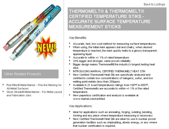 工業馬克筆 / 溫度筆 / 耐高溫筆 /測漏劑 / 膠封修補 > 溫度筆 (點我) > (美國) LA-CO --溫度筆-- 溫度:38℃~1204℃