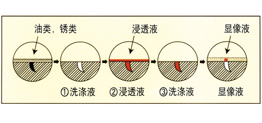 物体表面均匀涂刷后需30分钟浸透时间用水清洗,擦干后涂湿像液可在缝细出现,红色线,可查部位