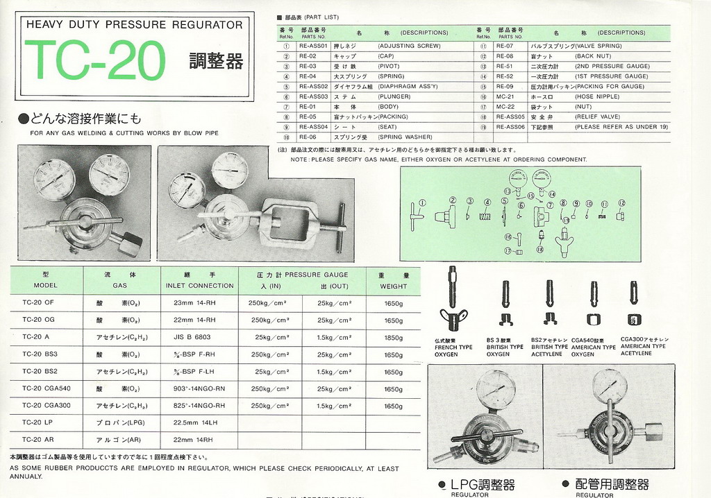 *工業級* 氣體調整器 / CO2 加熱器 / 流量計 / 小型錶 / 等 > 工業 / 普通流量 (點我) > <日本>田中 TANAMAX 氧氣 O2 調整器 TC-20