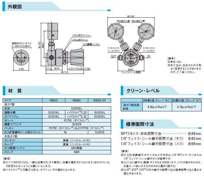 CROWN 半導體用壓力調整器 R20 高圧標準流量