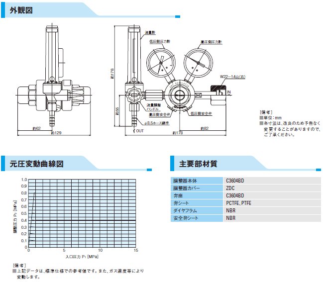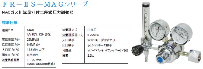 MAGガス用流量計付二段式圧力調整器