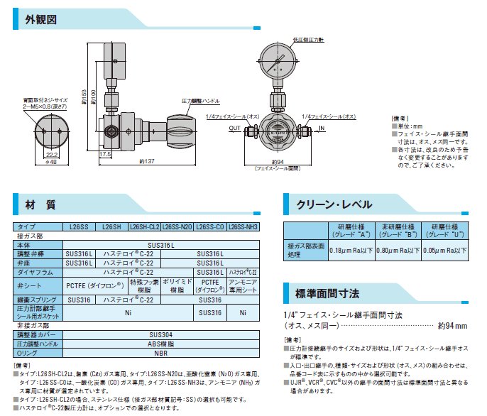 *高級工業* 日本 CROWN 調整器 / 半導體級/ 工業級 / 精密級 > 半導体級 (點我) > CROWN 半導體用壓力調整器 L26 低壓標準型