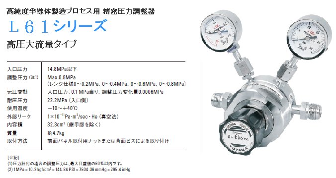 *高級工業* 日本 CROWN 調整器 / 半導體級/ 工業級 / 精密級 > 半導体級 (點我) > CROWN 半導體用壓力調整器 L61 高壓大流量