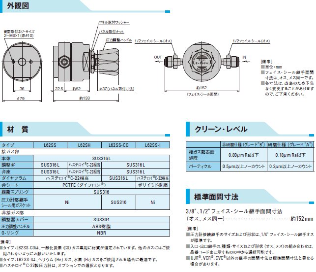 *高級工業* 日本 CROWN 調整器 / 半導體級/ 工業級 / 精密級 > 半導体級 (點我) > CROWN 半導體用壓力調整器 L62 高壓大流量