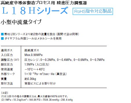 *高級工業* 日本 CROWN 調整器 / 半導體級/ 工業級 / 精密級 > 半導体級 (點我) > CROWN 半導體用壓力調整器L18H小型中流量