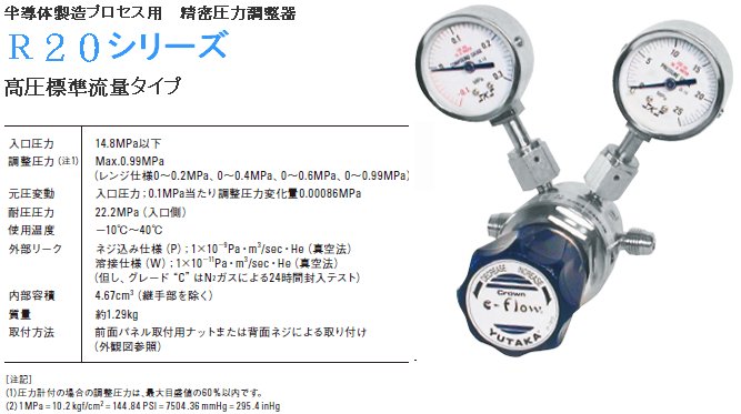 *高級工業* 日本 CROWN 調整器 / 半導體級/ 工業級 / 精密級 > 半導体級 (點我) > CROWN 半導體用壓力調整器R20高壓標準流量