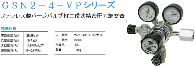 *高級工業* 日本 CROWN 調整器 / 半導體級/ 工業級 / 精密級 > 精密/ 不鏽鋼/ 耐酸鹼 (點我) > CROWN 理化級二段不鏽鋼GSN2-4-VP