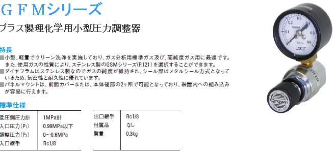 *高級工業* 日本 CROWN 調整器 / 半導體級/ 工業級 / 精密級 > 精密/ 不鏽鋼/ 耐酸鹼 (點我) > CROWN實驗室級-黃銅製壓力調節器GFM