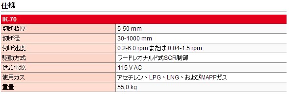 IK-70号は水平・垂直姿勢で開先切断を含む円切断を行う為に開発されたポータブル自動円切断機です。 直径30-1000mmの円切断が可能です。