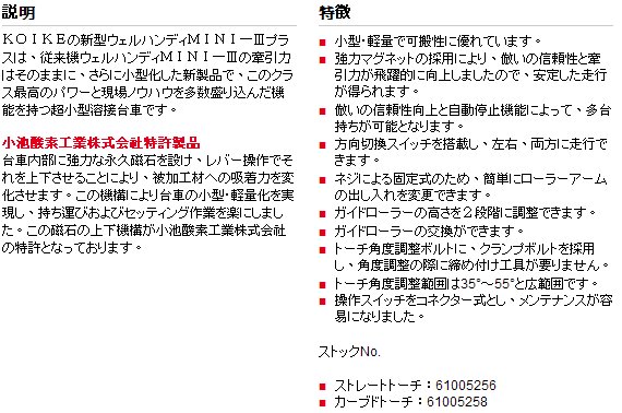 自動切斷機 / 自動工具類 > 溶接 / 焊接 自動機類 (點我) > KOIKE 小池 WEL-HANDY MINI-III Plus (多功能)