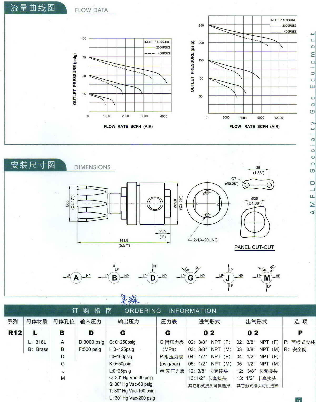 AMFLO 不鏽鋼 特殊氣體用 壓力調整器 R12