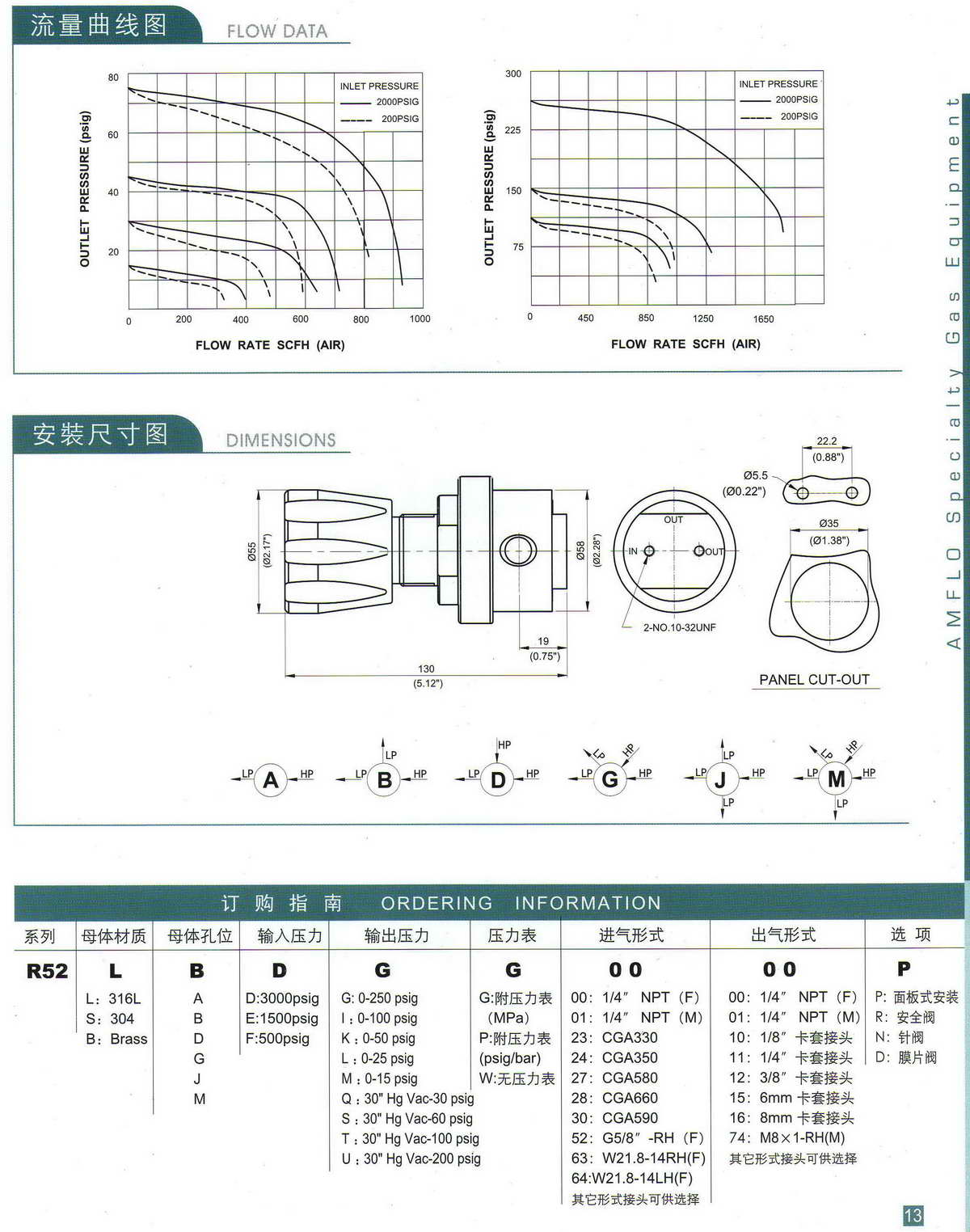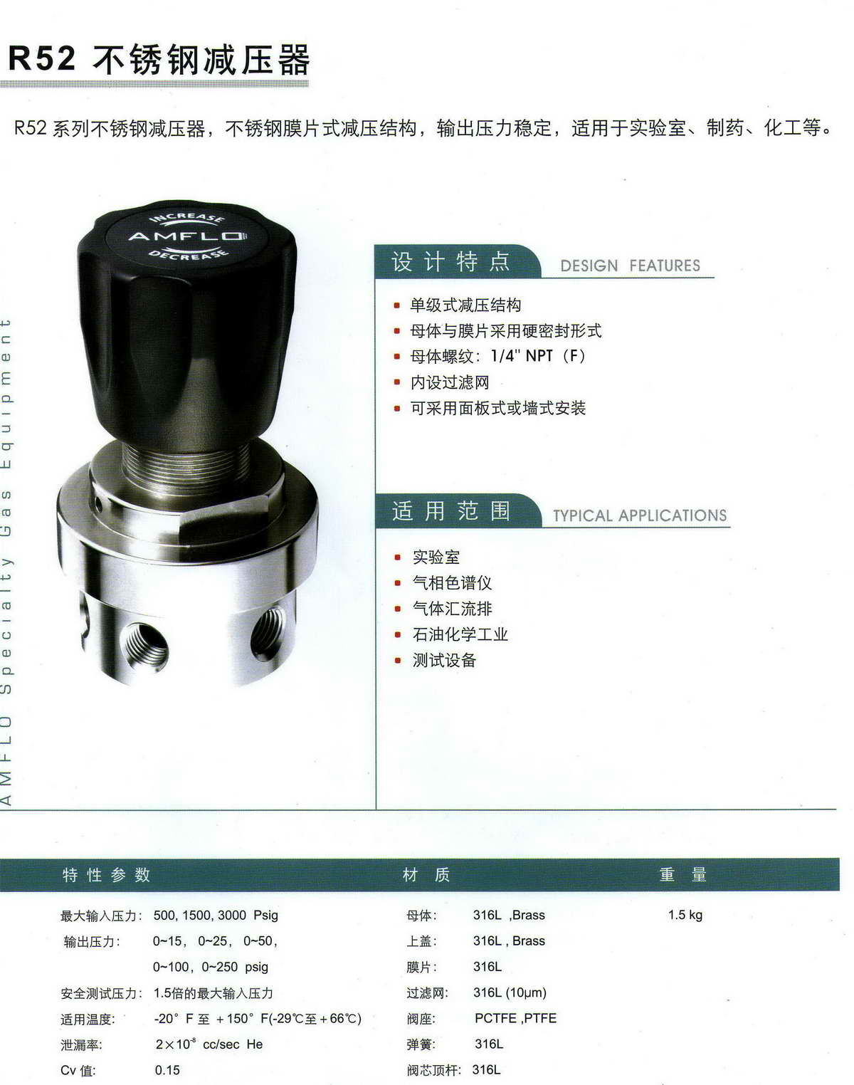 AMFLO 不鏽鋼 特殊氣體用 壓力調整器 R52