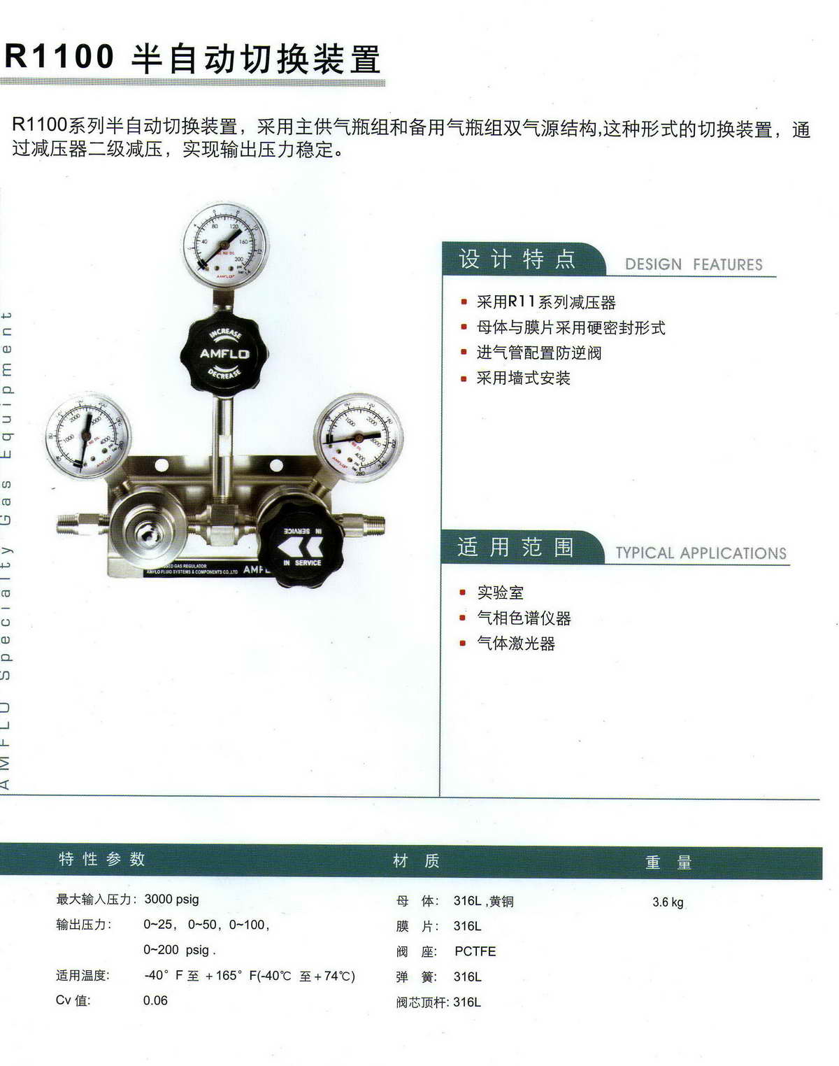 *高級工業* 日本 CROWN 調整器 / 半導體級/ 工業級 / 精密級 > 自動切換鋼瓶裝置 (點我) > AMFLO 不鏽鋼 氣體切換裝置 R1100