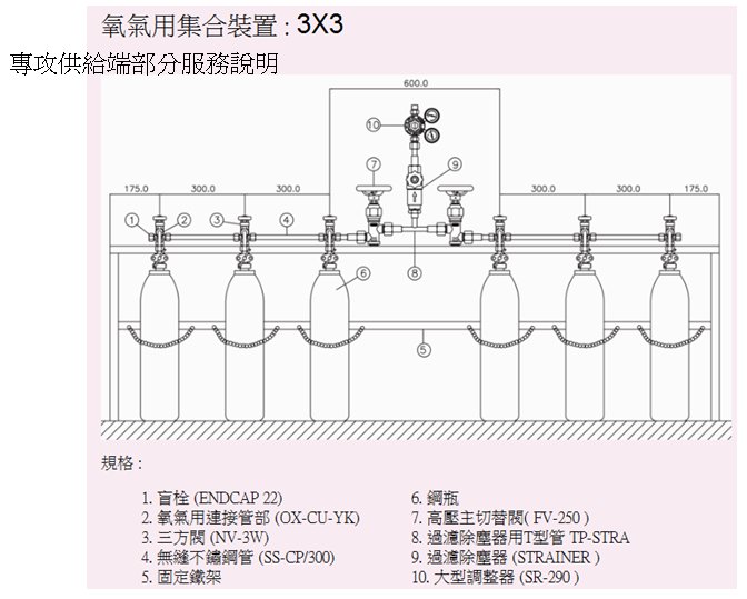 中油氣體管路線配線 (O2/ AC / N2 輸出壓力調整總成)
