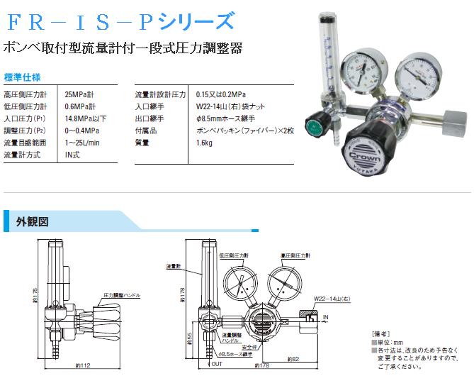 *高級工業* 日本 CROWN 調整器 / 半導體級/ 工業級 / 精密級 > 工業級 (點我) > CROWN 一段式壓力調整器 FR-IS-P