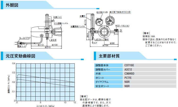 炭酸ガス用接点付圧力計付ヒーター内蔵圧力調整器