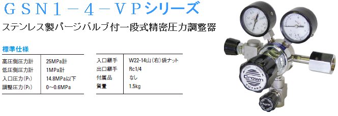 *高級工業* 日本 CROWN 調整器 / 半導體級/ 工業級 / 精密級 > 精密/ 不鏽鋼/ 耐酸鹼 (點我) > CROWN理化級一段式不銹鋼 GSN1-4-5A